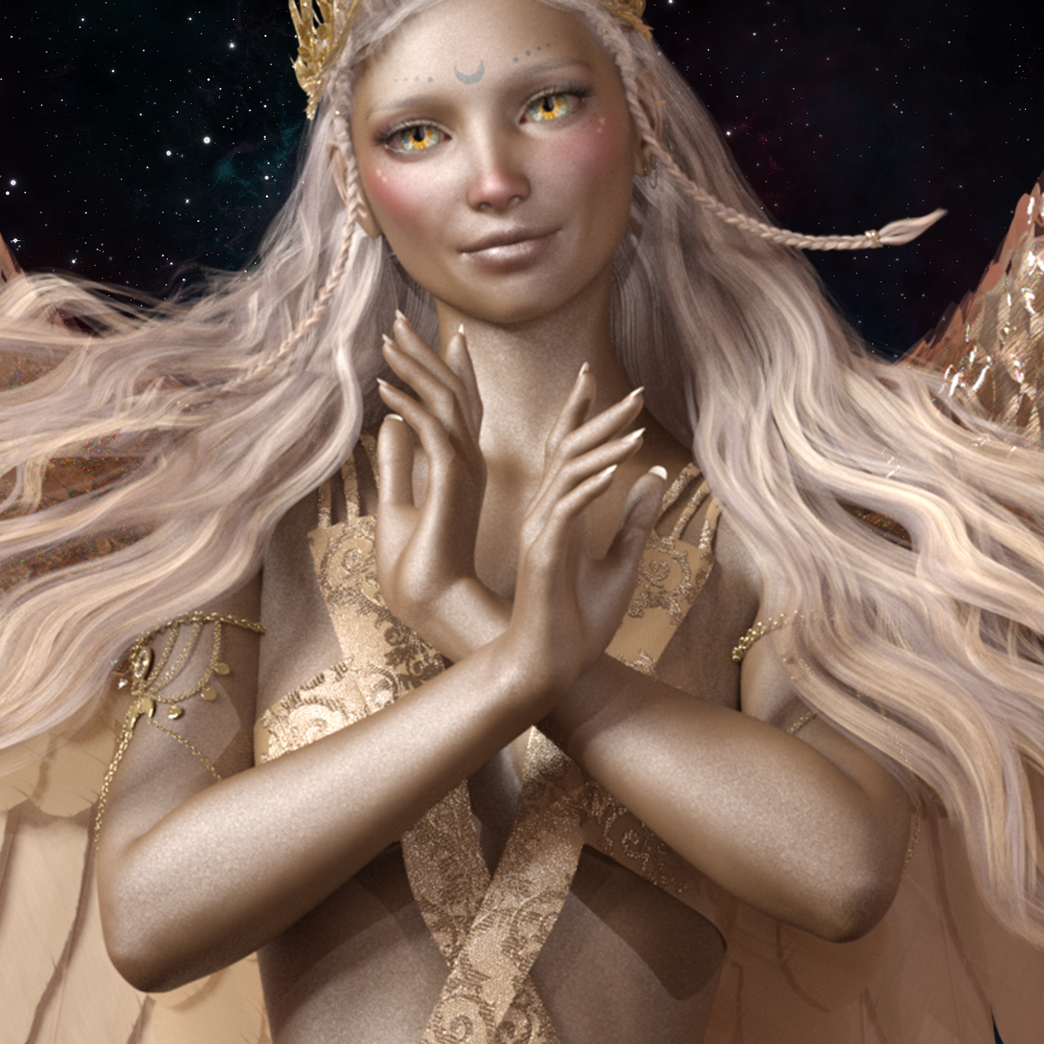 Born from ethereal waves of luminosity, the Guardian of the Cosmic Gateway Chakra brightens the universe like a shimmering constellation. She glides through spiral galaxies and stellar doorways spreading her goodwill like jewels across the cosmos. Her mesmeric beauty stirs us, helps us remember our intense sparkle within.